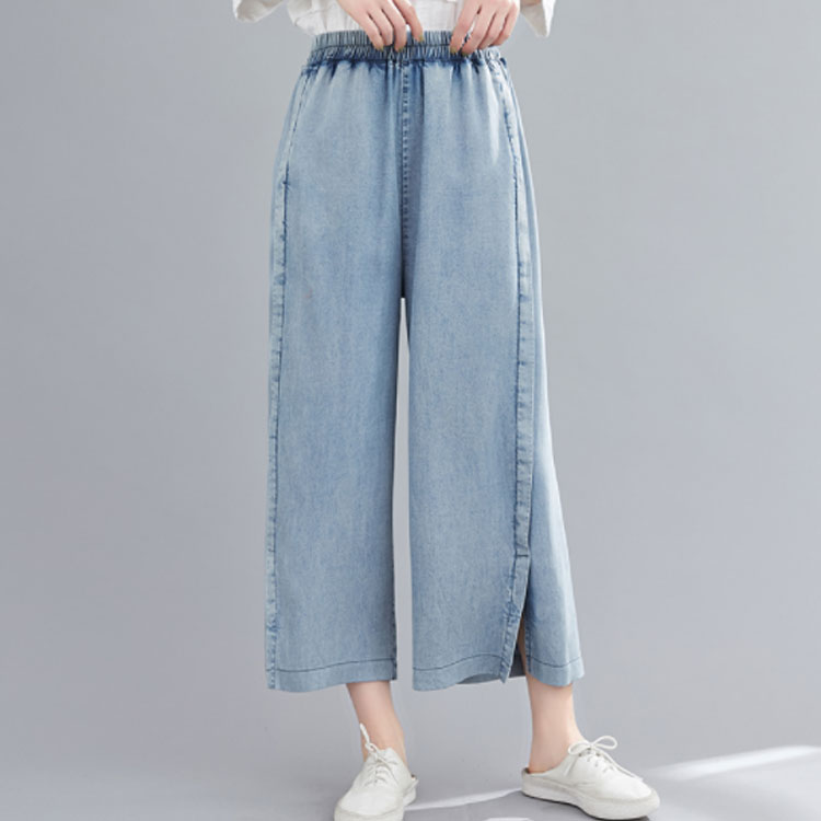 デニムパンツ レディース 7分丈 夏 スリット ゆったり ワイドパンツ ハイウェスト 薄手 シンプル カジュアル 普段着 夏新作 送料無料 大きサイズ 無地