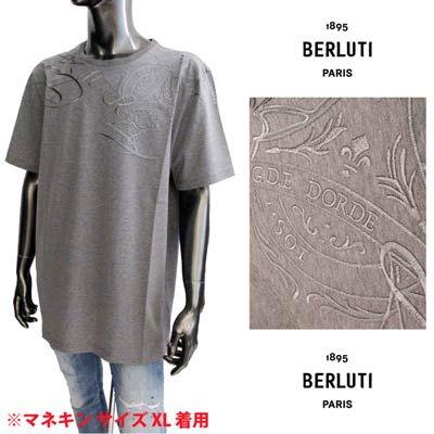 ベルルッティ BERLUTI メンズ トップス Tシャツ 半袖 カットソー ロゴ 肩部分ランゲージロゴ/エンブレムロゴ刺繍付Tシャツ グレー R21JRS65 002 P36 (R85250) GB122 2021年秋冬新作【送料無料】 【smtb-TK】